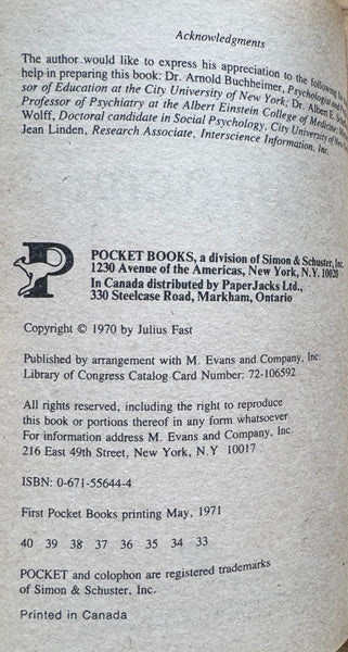 Body Language, Julius Fast. Pocket Books, 1971.