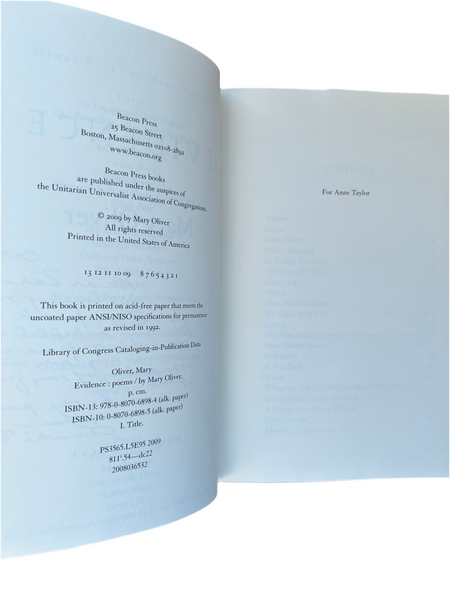 Evidence, Mary Oliver. Beacon Press, 2009. First Edition.