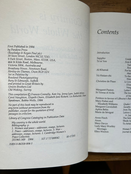 My Country is the Whole World: An Anthology of Women's Work on Peace and War. Pandora Press, 1984.
