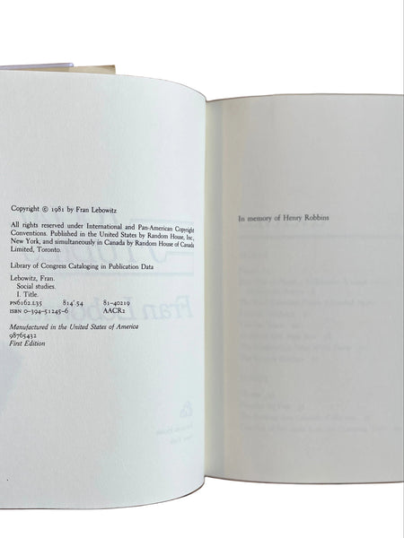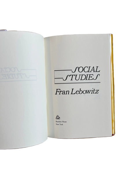 Social Studies, Fran Lebowitz. Random House, 1981. First Edition.