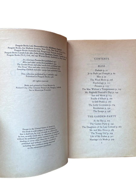 The Collected Short Stories, Katherine Mansfield. Penguin, 1981.