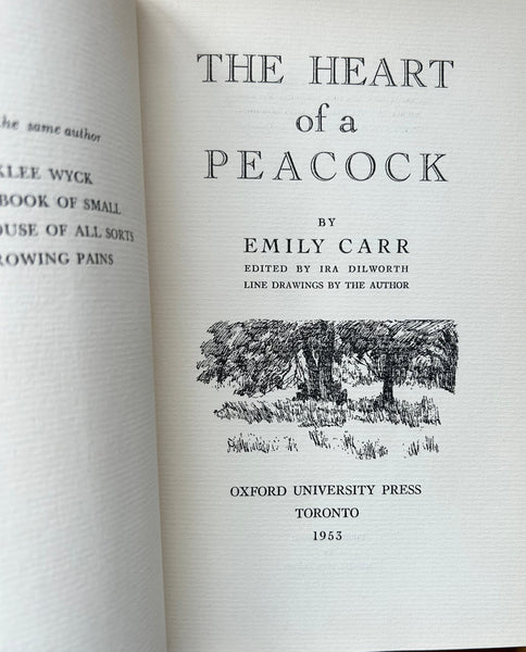 The Heart of a Peacock, Emily Carr. Oxford University Press, 1953. First edition.