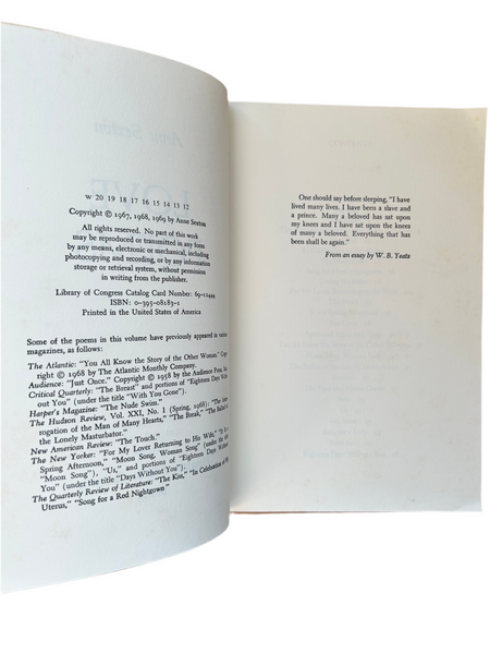 Love Poems, Anne Sexton. Houghton Mifflin Co, 1969.