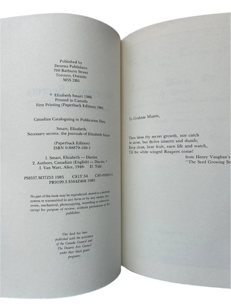 Necessary Secrets, Elizabeth Smart. Deneau, 1988.