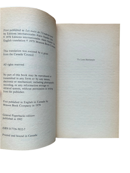 Nights in the Underground, Marie-Claire Blais. New Press, 1979.