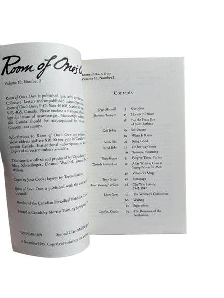 Room of One’s Own - Volume 10, Number 2. The Growing Room Collective, 1985.